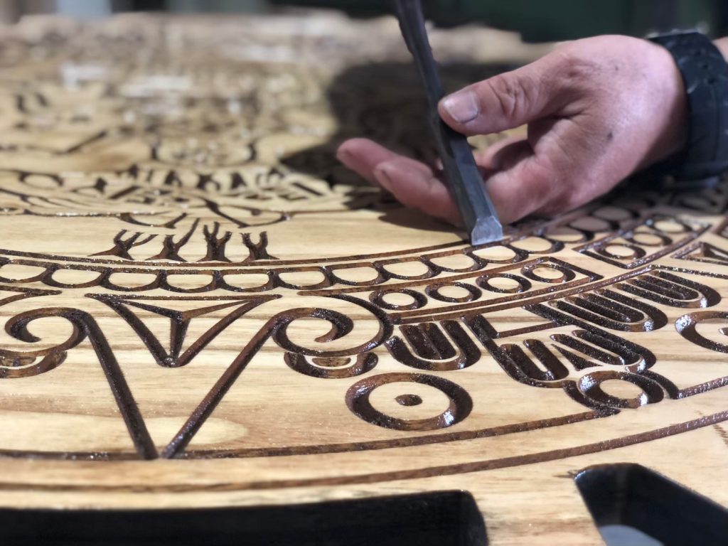 機械では決して再現できない、手彫りならではの温かみ。木目を読み、一刀一刀丁寧に刻まれた彫刻は、まさに一点物の芸術品です。同じデザインでも、木材の個性と職人の手仕事が組み合わさることで、世界に一つだけの天板が生まれます。